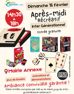 🎲 Un après-midi récréatif intergénérationnel à la mairie annexe 📅 Dimanche 15 février 🕝 De 14h30 à...